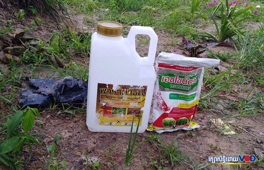 ធុង និងសំបកថ្នាំគីមីពុលហាមឃាត់ត្រូវបានអ្នកភូមិរកឃើញនៅលើដីសម្បទាន