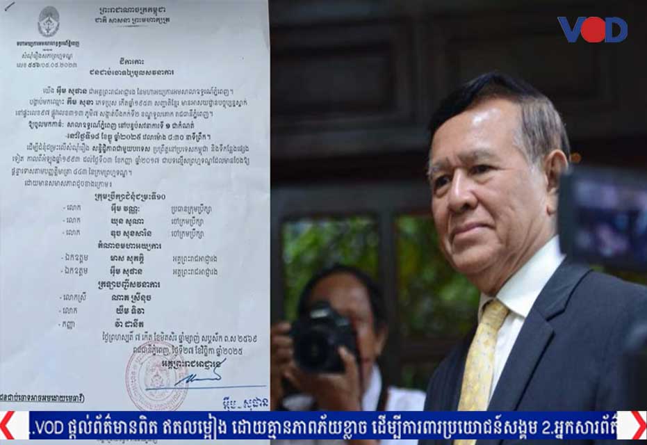 សំណុំរឿងដ៏ចម្រូងចម្រាសរបស់ លោក កឹម សុខា ប្រធានមេដឹកនាំគណបក្សសង្គ្រោះជាតិដែលតុលាការរំលាយ នឹងត្រូវសាលាឧទ្ធរណ៍ភ្នំពេញ លើកយកមកជម្រះឡើងវិញ នៅថ្ងៃទី១៨ ខែធ្នូ ឆ្នាំ២០២៥ ដែលមានលោក អ៊ឹម វណ្ណៈ ជាប្រធានក្រុមប្រឹក្សាជំនុំជម្រៈ។